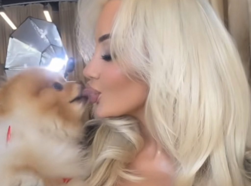 Në një video të shpërndarë në InstaStory, ajo shfaqet në një moment të këndshëm me një qenush të vogël, i cili nuk ndalet duke e mbuluar me puthje.