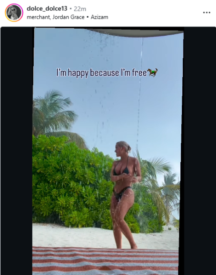 Në pamjet e shpërndara në Instagram, ajo shfaqet me bikini duke realizuar lëvizje provokuese, ndërsa krahas videos ka dhënë edhe një mesazh që lidhet me jetën e saj personale.
